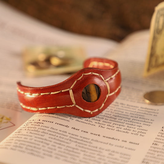 100% Genuine Leather Cuff Bracelet with South African Tiger's Eye