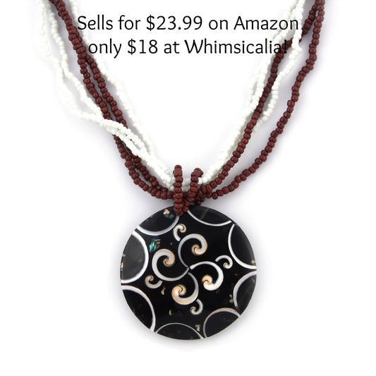 3 Strand Glass Beads Pearl Shell Necklace 18 inches