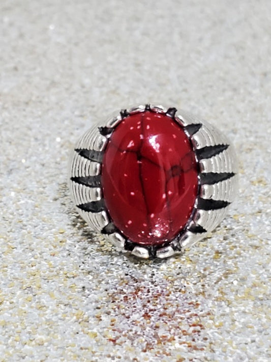 Men's Red Turquoise 925 Silver Ring Size 10.5