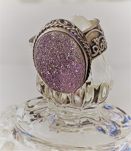 Peruvian Pink Opal and Thai Black Spinel Ring Sz 8, 9