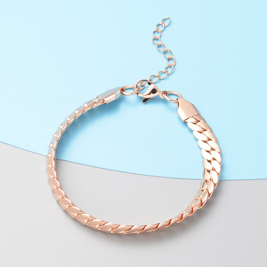 Silver or Gold, or Rose Gold Cobra Bracelet 7.5" Plus 2" Extender Unisex