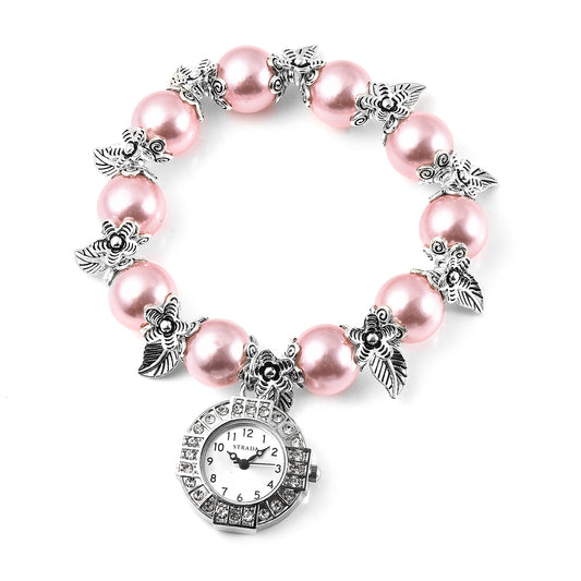 White Austrian Crystal, Pink Simulated Pearl Beaded Watch