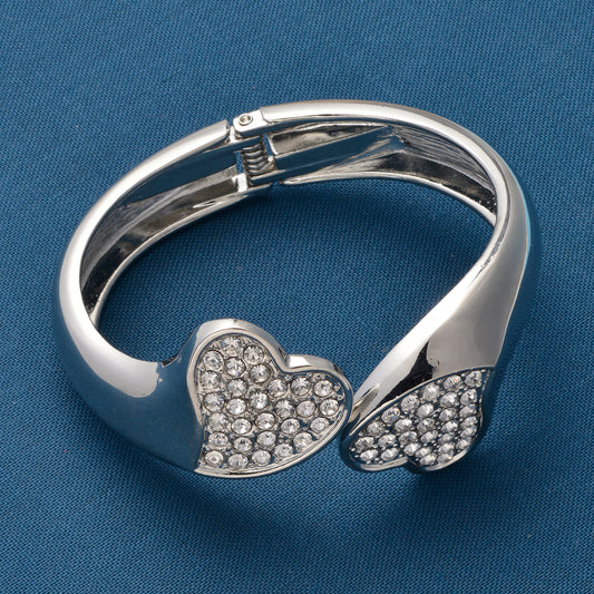 Double Heart Open End Cuff Bracelet in Silver, Gold or Rosetone