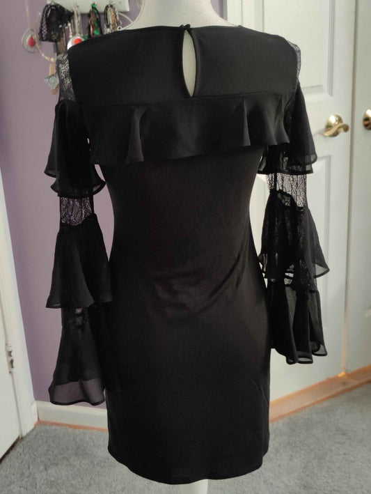 White House Black Market Black Ruffle Bell Lace Sleeve Dress