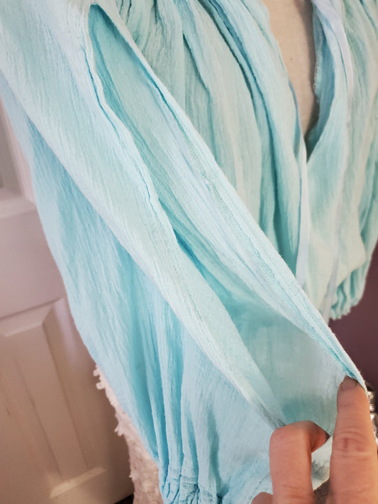 Dreamy Blue 100% Cotton Off Shoulder Top with Split Sleeves