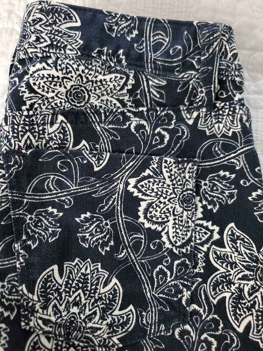 Banana Republic Skinny Jeans Navy Blue Floral Print Size 25P
