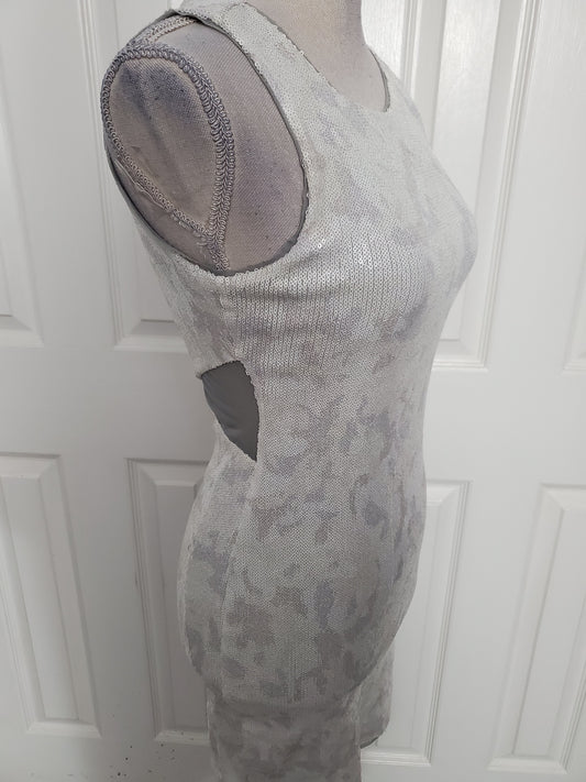 Sleeveless Silver Sequin Mesh Cocktail Dress