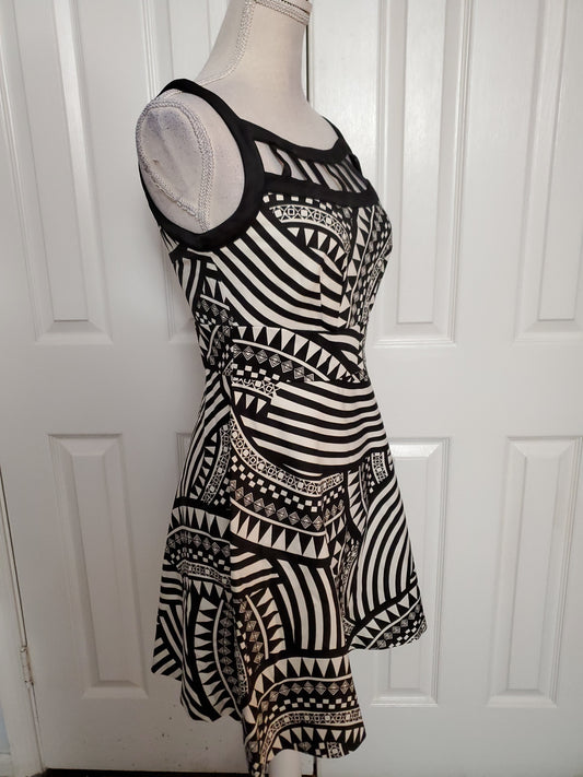 Geometric Pattern Sleeveless Crisp Form Flattering Dress