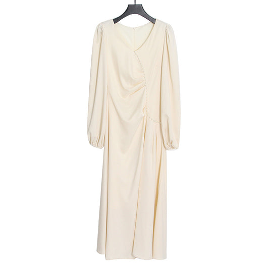 Women's Fashion Retro Long-sleeve Round-collar Dress