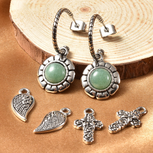 Interchangeable Green Fluorite Carved Artisan Earrings