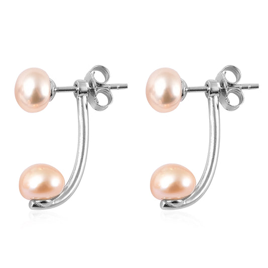 Pink Freshwater Cultured Pearl Dual Stud Pearl Earrings