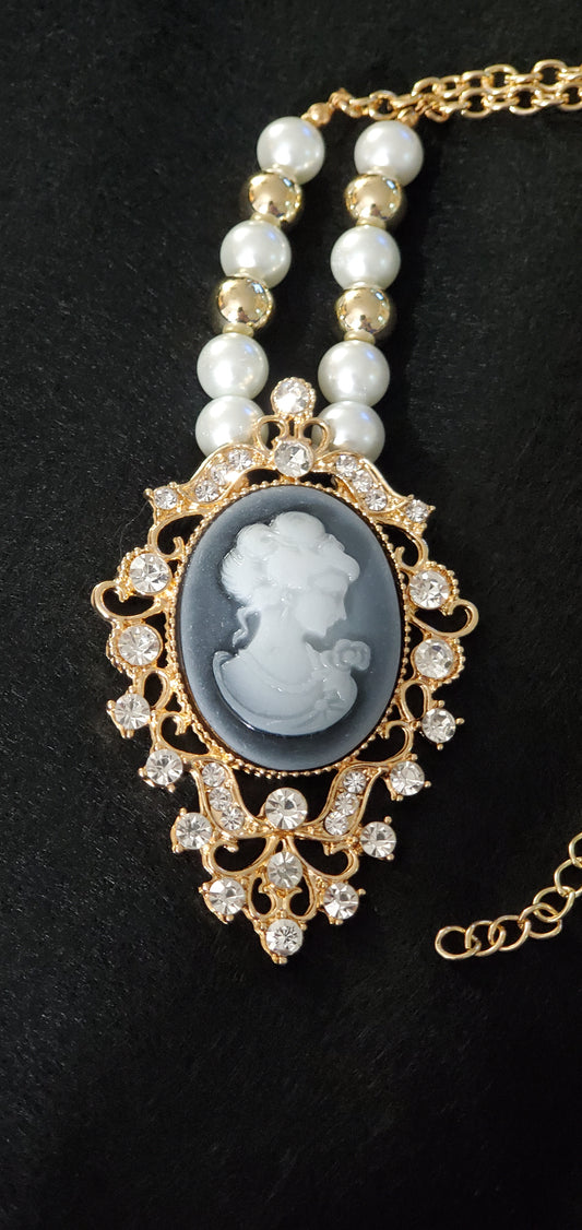 Smokey Gray Cameo Pendant Necklace and Earrings