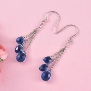 Ceylon Blue Quartz Dangle Earrings in Platinum Over Sterling Silver