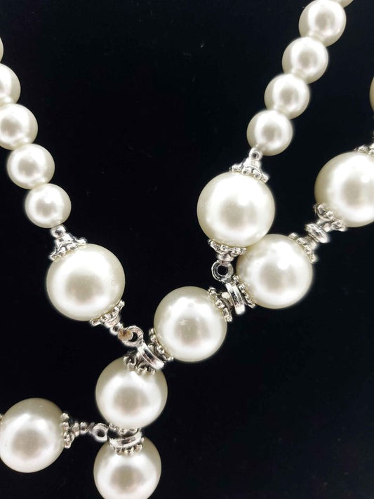 Carved Gray Shell Pendant With Golden Seed Bead Necklace and Matching Bracelet and Earrings