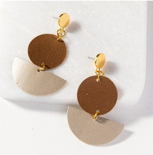 Handmade Black and Camel Leather Earrings