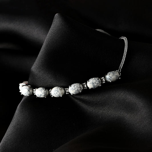 White Howlite Line Bolo Bracelet in Stainless Steel 9.75 ctw