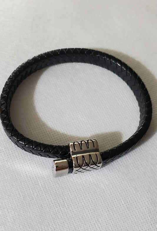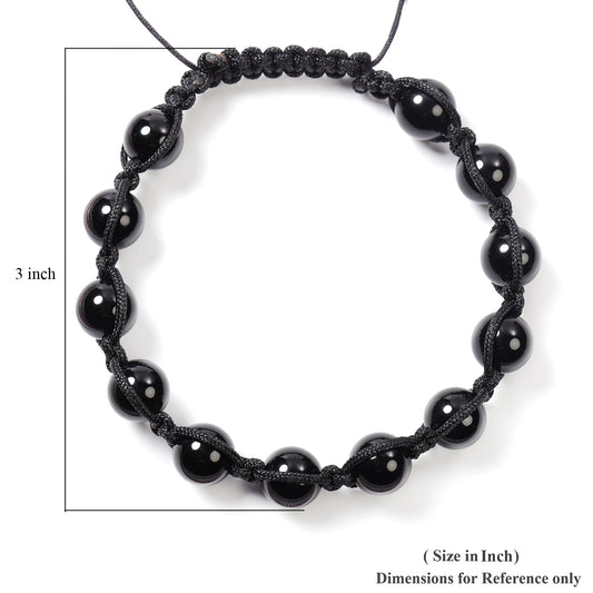 Men's Enhanced Black Agate Bracelet Genuine Leather
