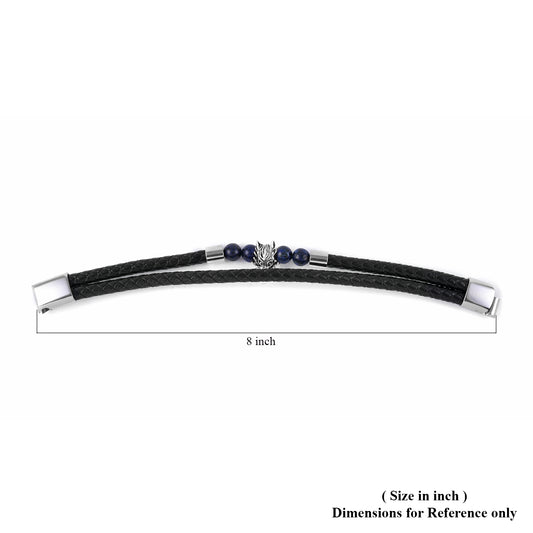 Men's Black Leather Dragon's Head and Lapis Lazuli Bracelet