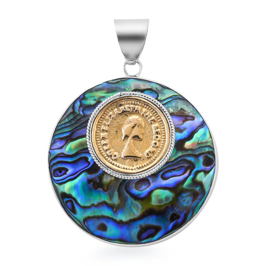 Unisex Abalone Shell Coin Pendant in Sterling Silver With Free Premium Chain