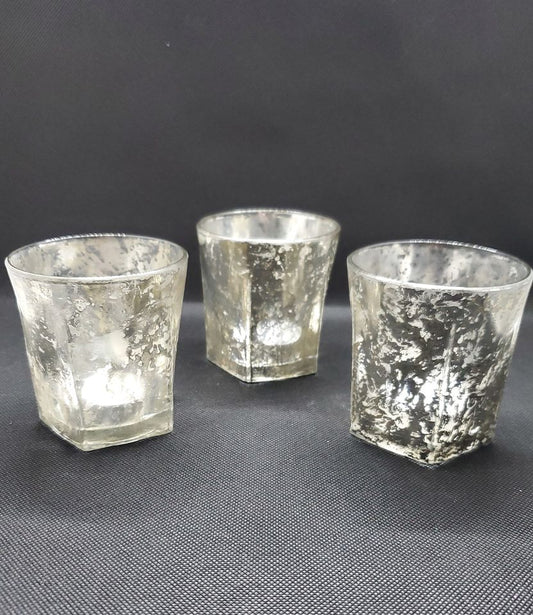 Mercury Glass Vintage Crackle Candle Holders with Tea Light Candle Set of 3