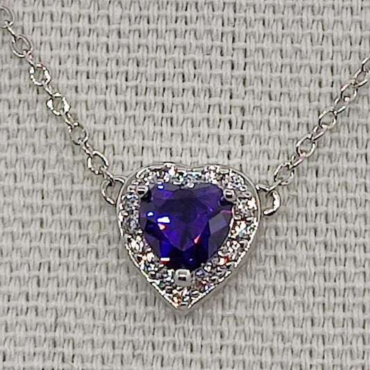 Halo Shapphire or Alexandrite Heart Silver Necklace
