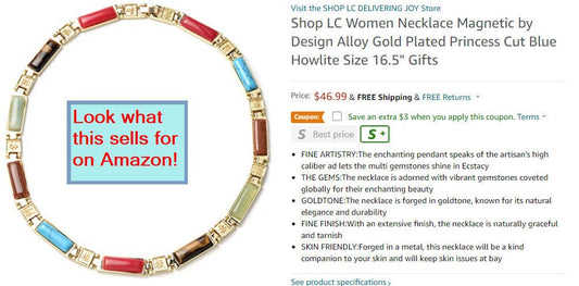 Magnetic Gold Sandstone Chinese Blessing Characters Necklace