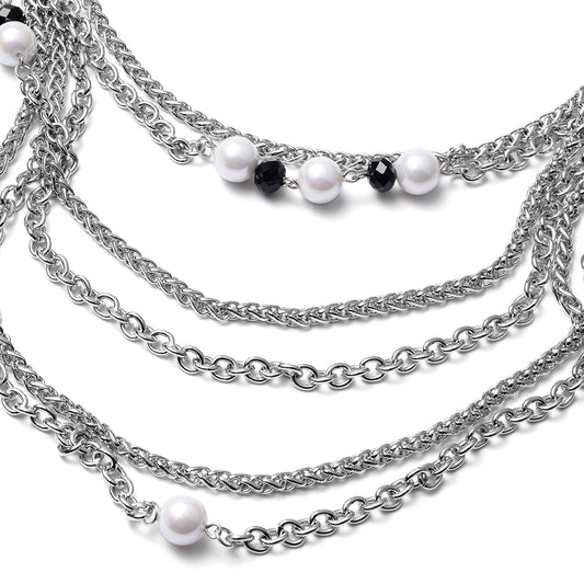 White Pearl Glass, Black Glass Triple-Row Necklace (24 Inches)
