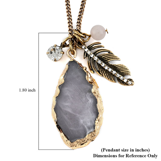 Agate and Austrian Crystal Feather 18 inch Necklace