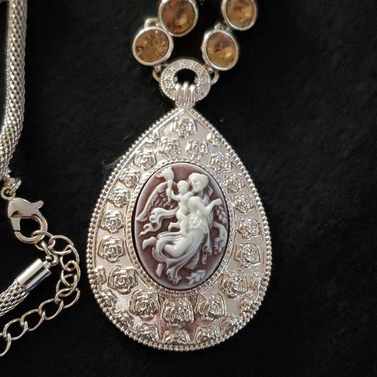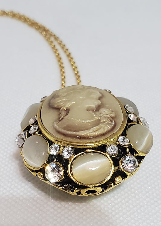 Beautifully Crafted Cameo Pearl Necklace 24"