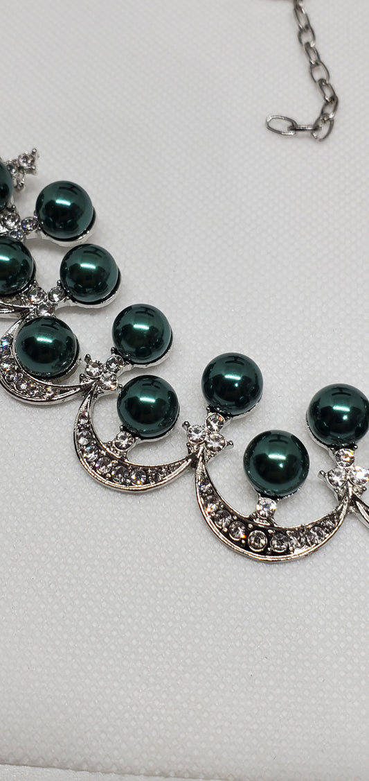 Simulated Peacock Pearl and White Austrian Crystal Necklace 20 Inches