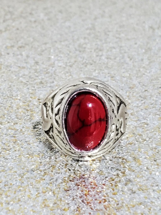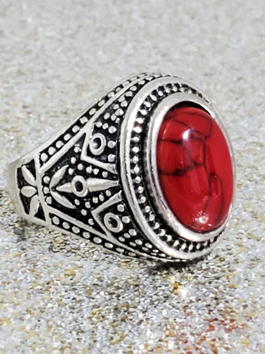 Men's Red Turquoise 925 Silver Ring Size 10.5