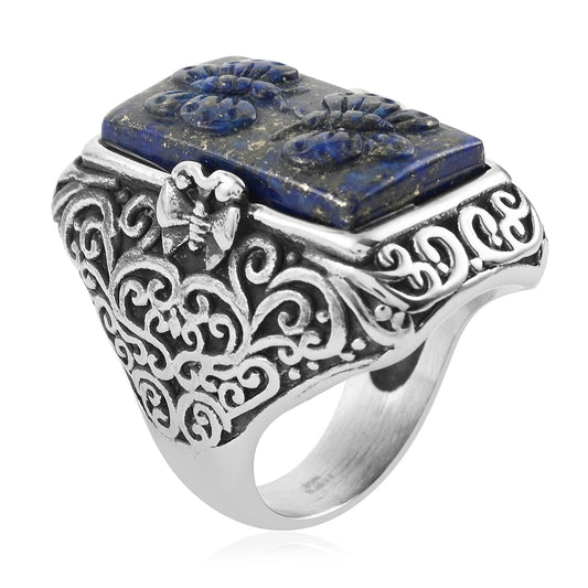 Handcrafted Lapis Lazuli Carved Butterfly Ring Sz 7