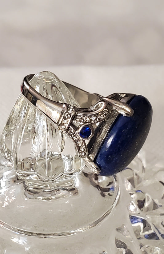 Lapis Lazuli and Blue Austrian Crystal Ring Size 8