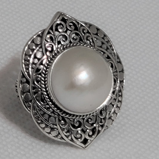 BALI LEGACY White or Blue Mabe Pearl Sterling Silver Ring
