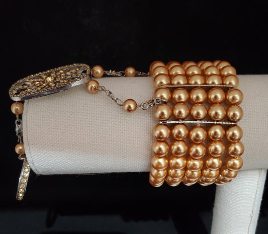 Champagne Glass Pearl Crystal Ring and Bracelet