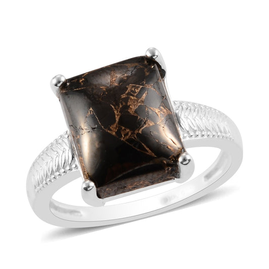 Ring, Size 8 Matrix Black Spinel and Opalina Ring 9.85 ctw