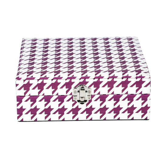 Purple and White Houndstooth Pattern Jewelry Box