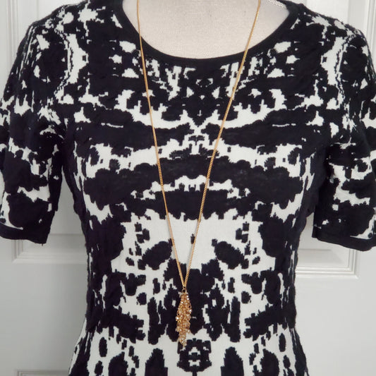 Abstract Print Black & White Knit Sweater Dress - Size Medium