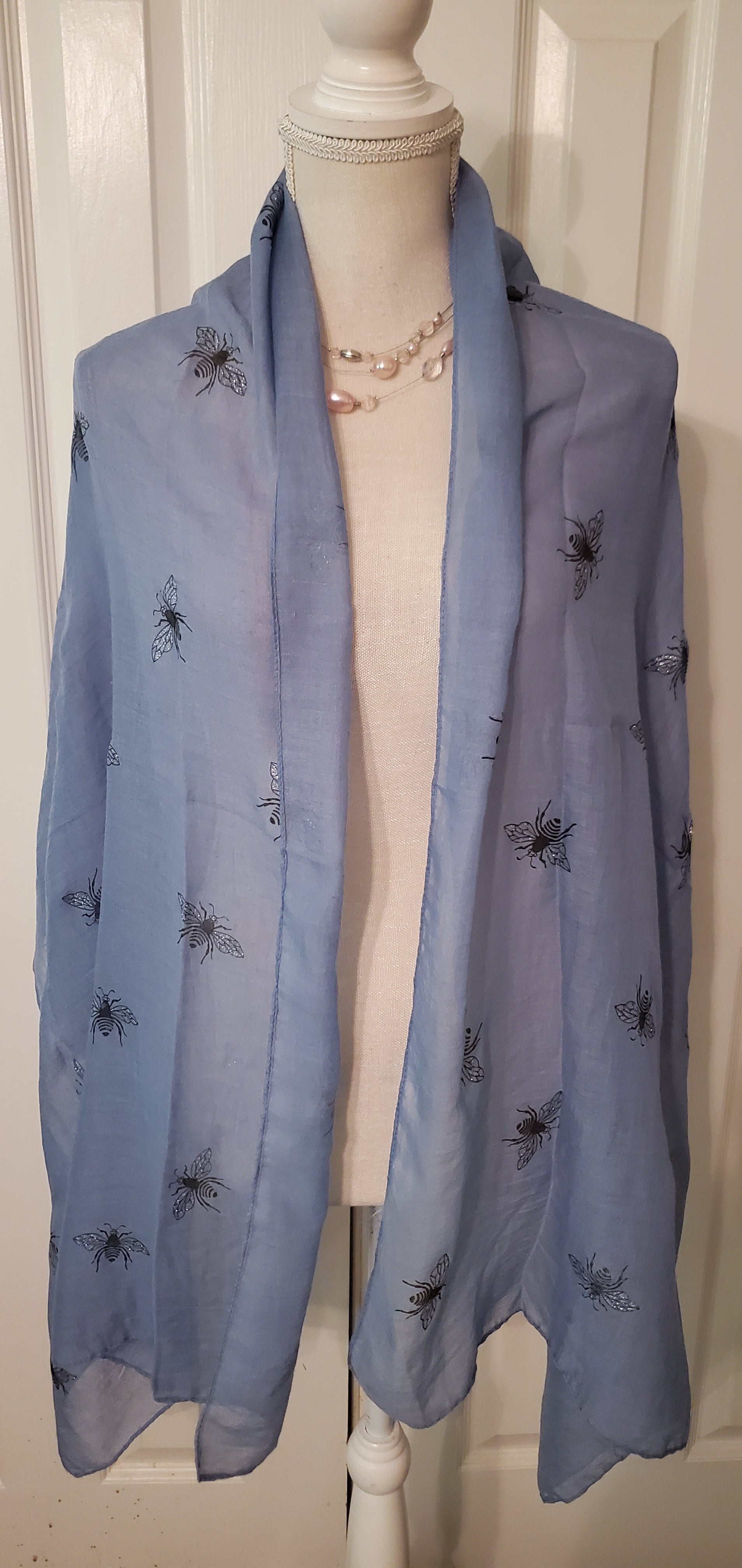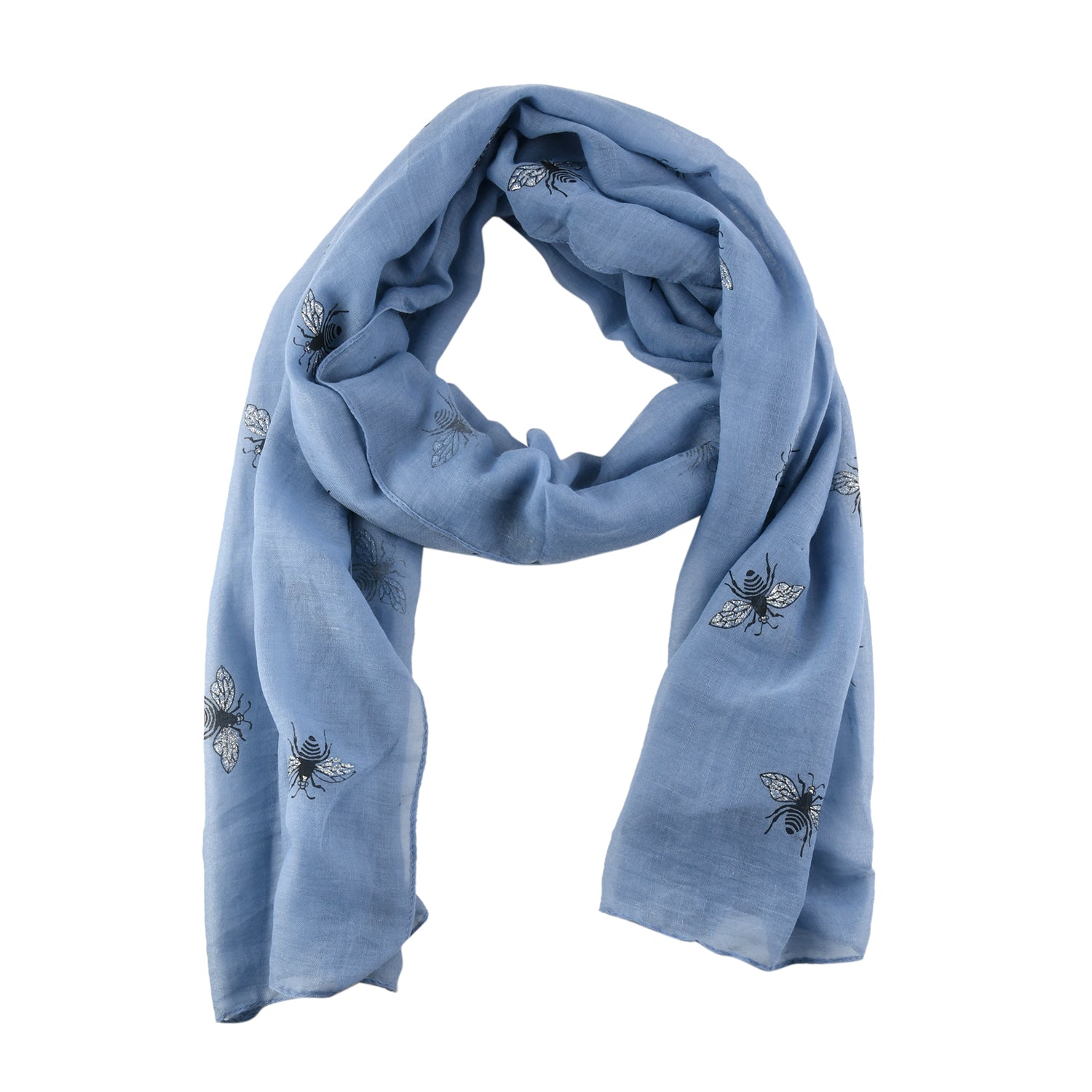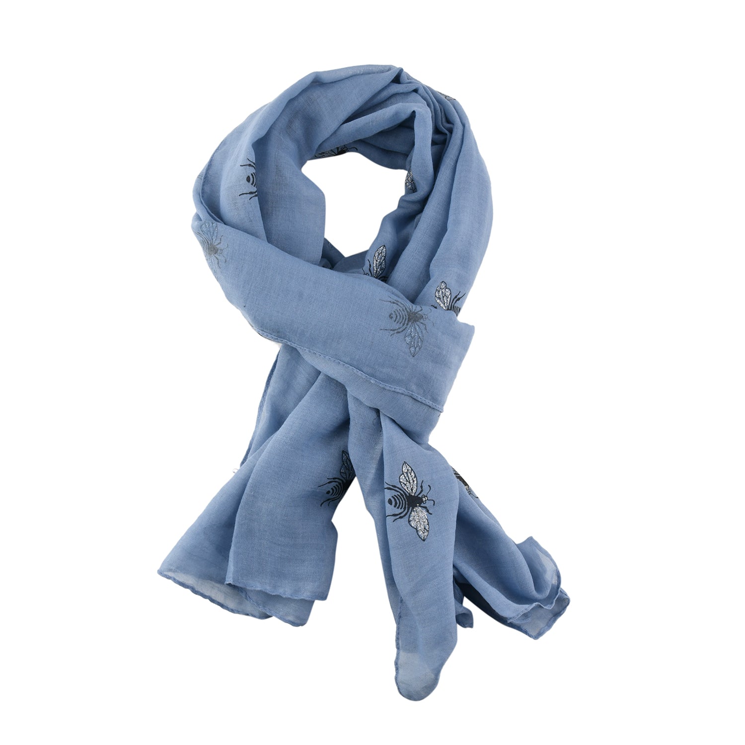 Versatile Light Blue Leaf Print Pattern Scarf 100% Viscose