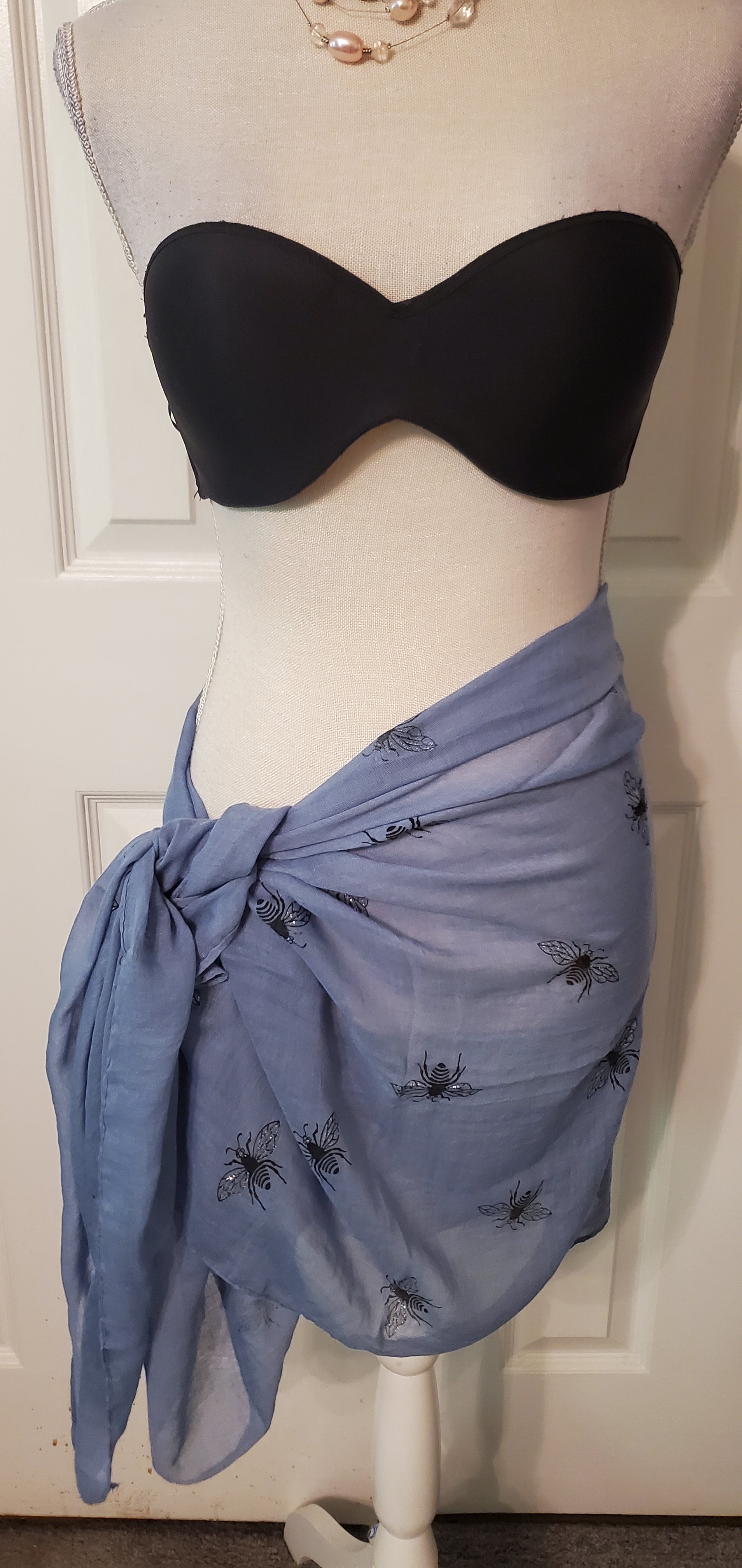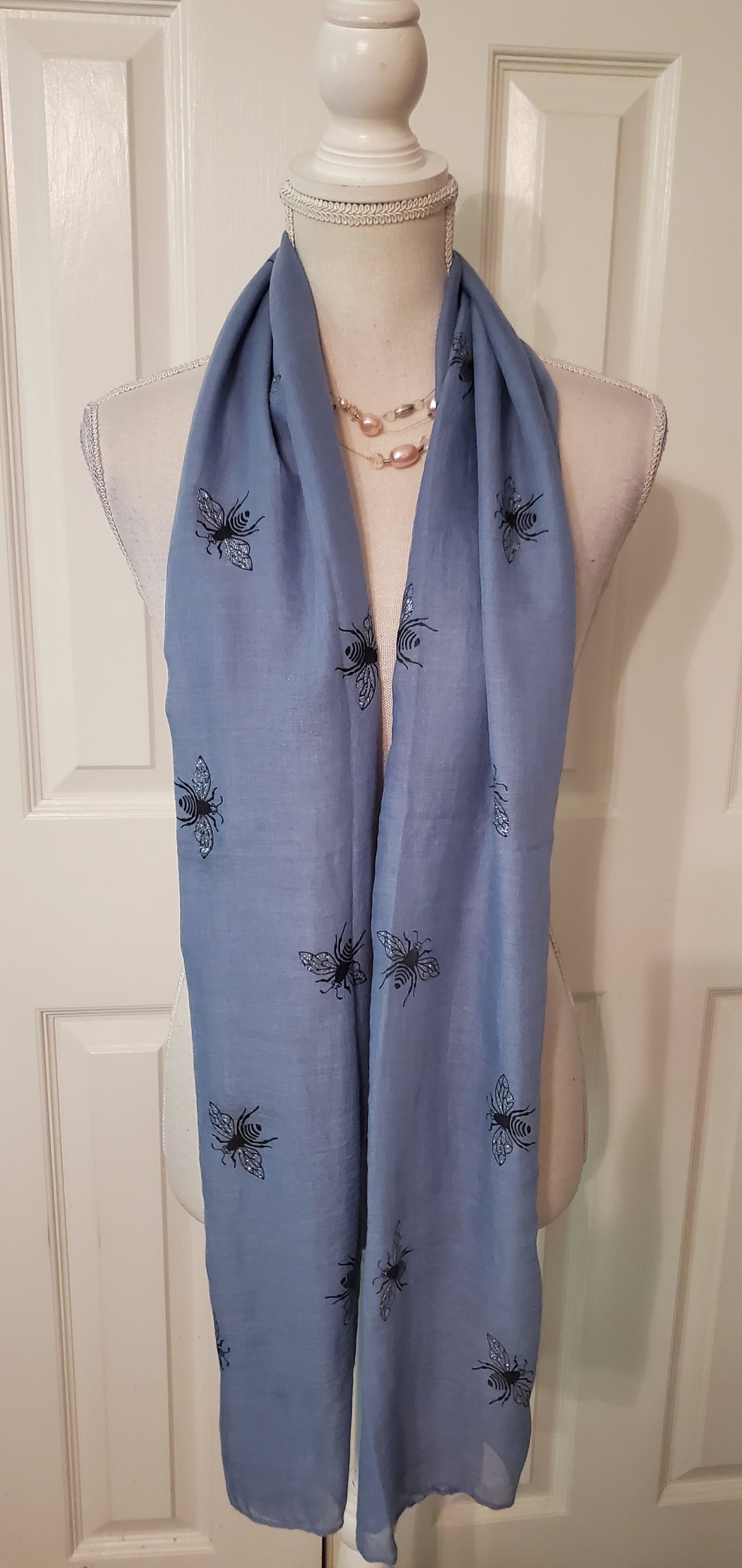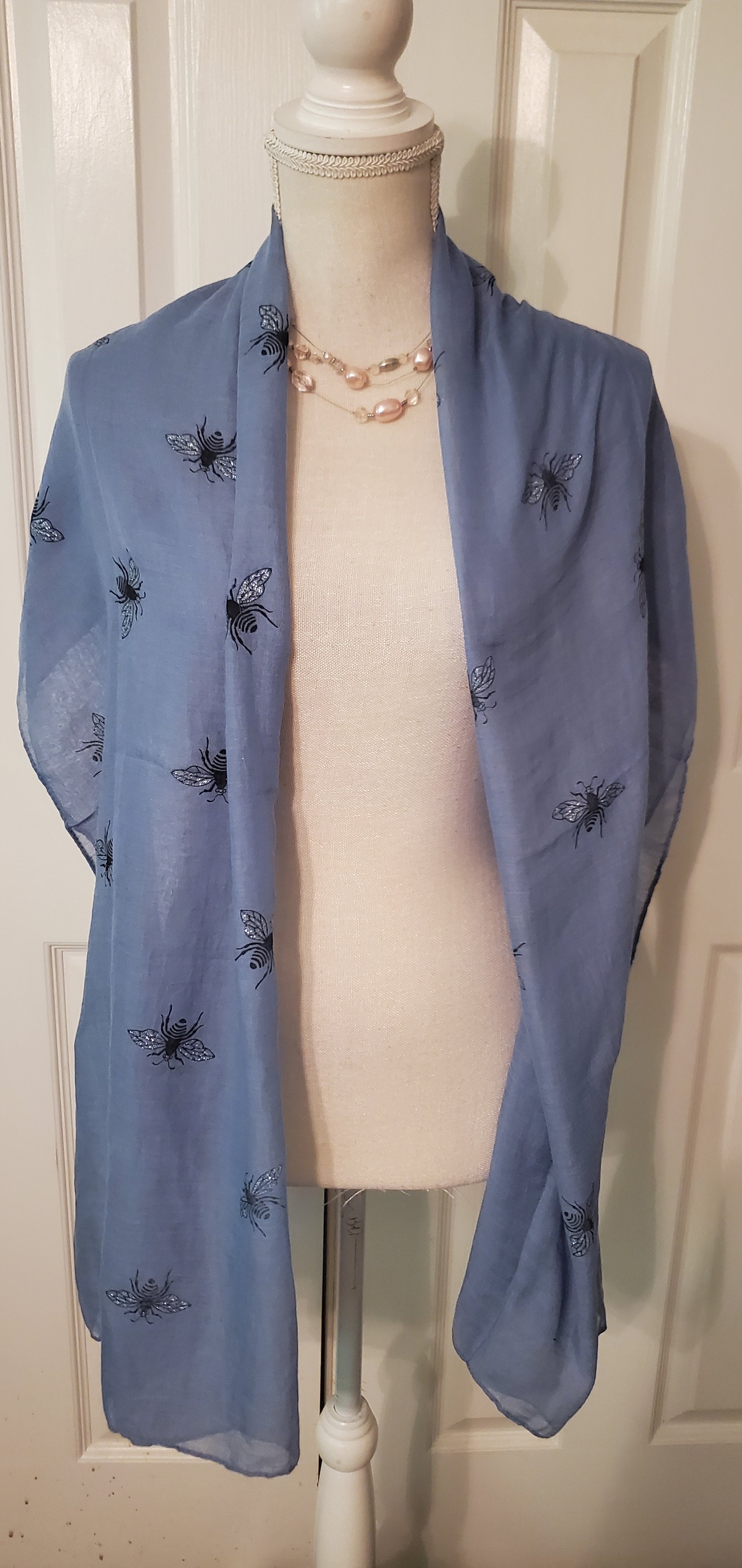 Versatile Light Blue Leaf Print Pattern Scarf 100% Viscose