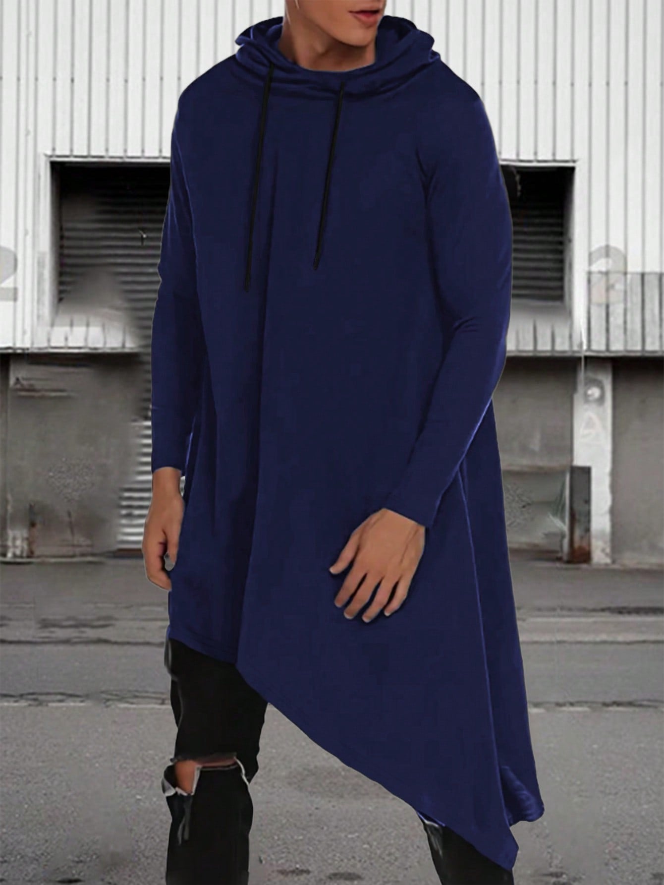 Manfinity LEGND Men Plus Solid Drawstring Hooded Asymmetrical Hem Longline Sweatshirt
