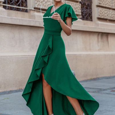 NWT Miusol Formal V Neck Ruffle Split Evening Prom Long Dress