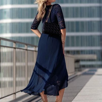 Miusol Women's Elegant Floral Lace Ruffle Split Hem Dress Size Small, Med