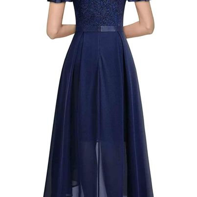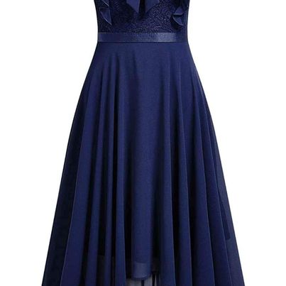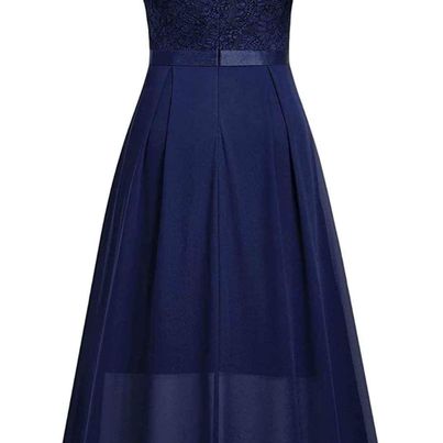 Miusol Women's Retro Floral Lace Bow-Neck Design Party High-Low Dress