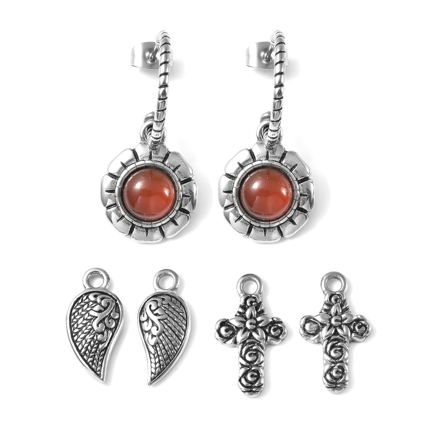 Breathe a new life to your collection with the artistic appeal of these half hoop earrings with interchangeable charms. A minimal pair of classic twisted rope hoops look more appealing than ever with these modern interchangeable charms. A PERFECT SET: This set is featured with one half hoop earrings, and three meaningful charms- floral, feather, and a cross charm