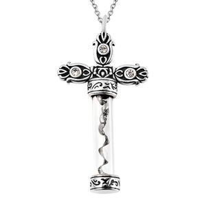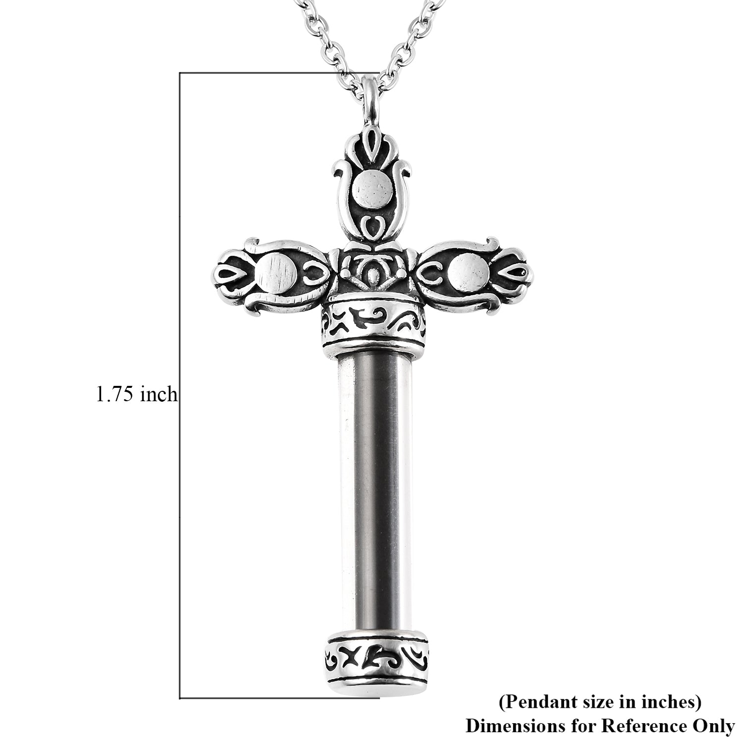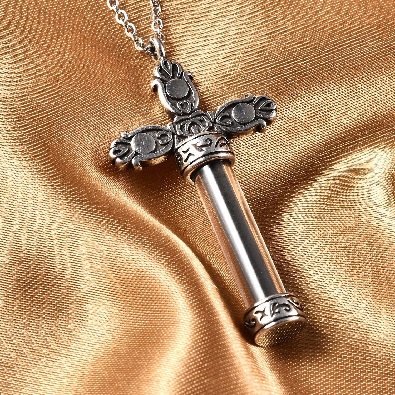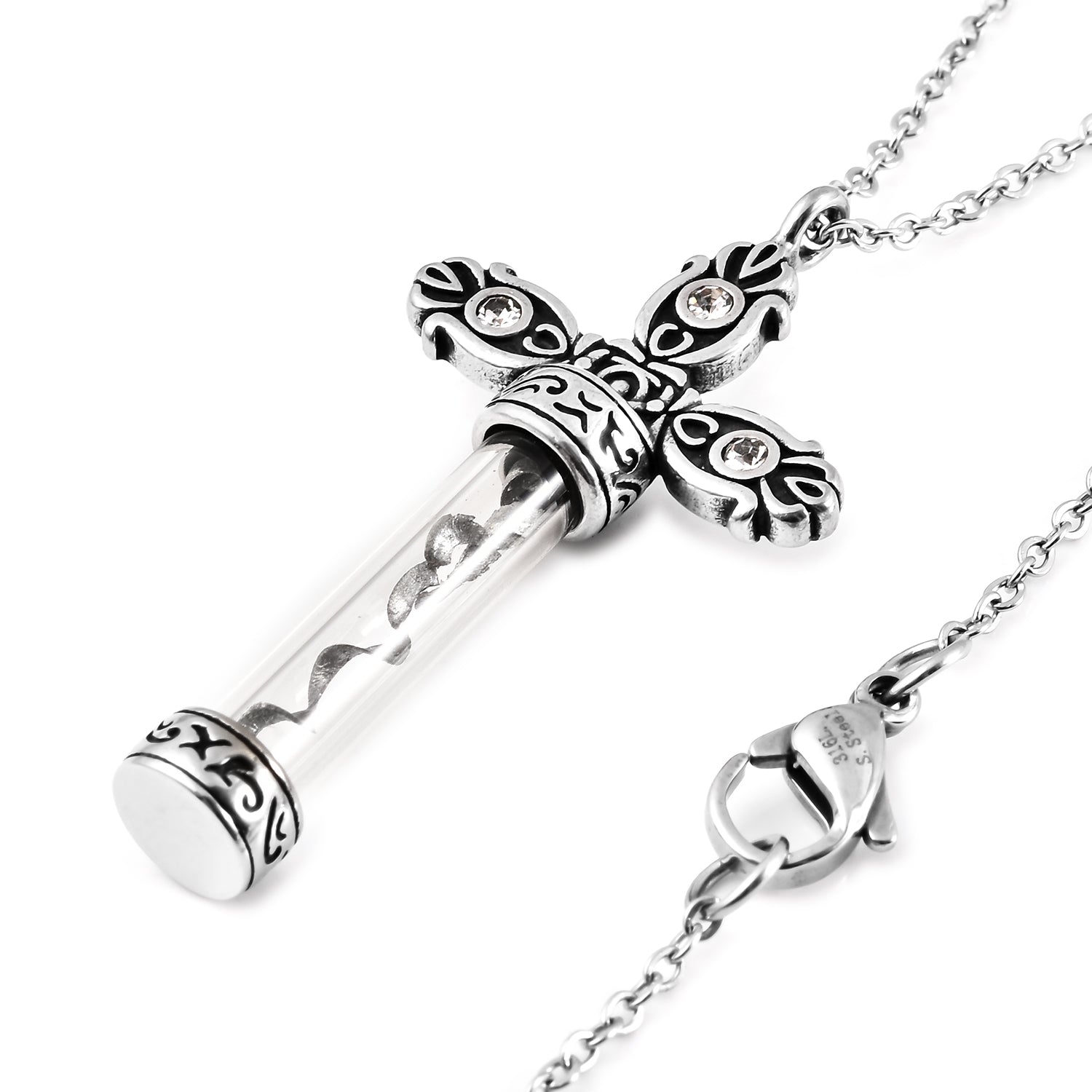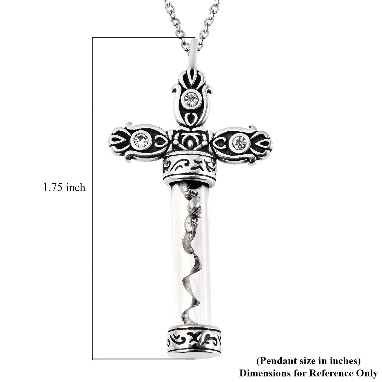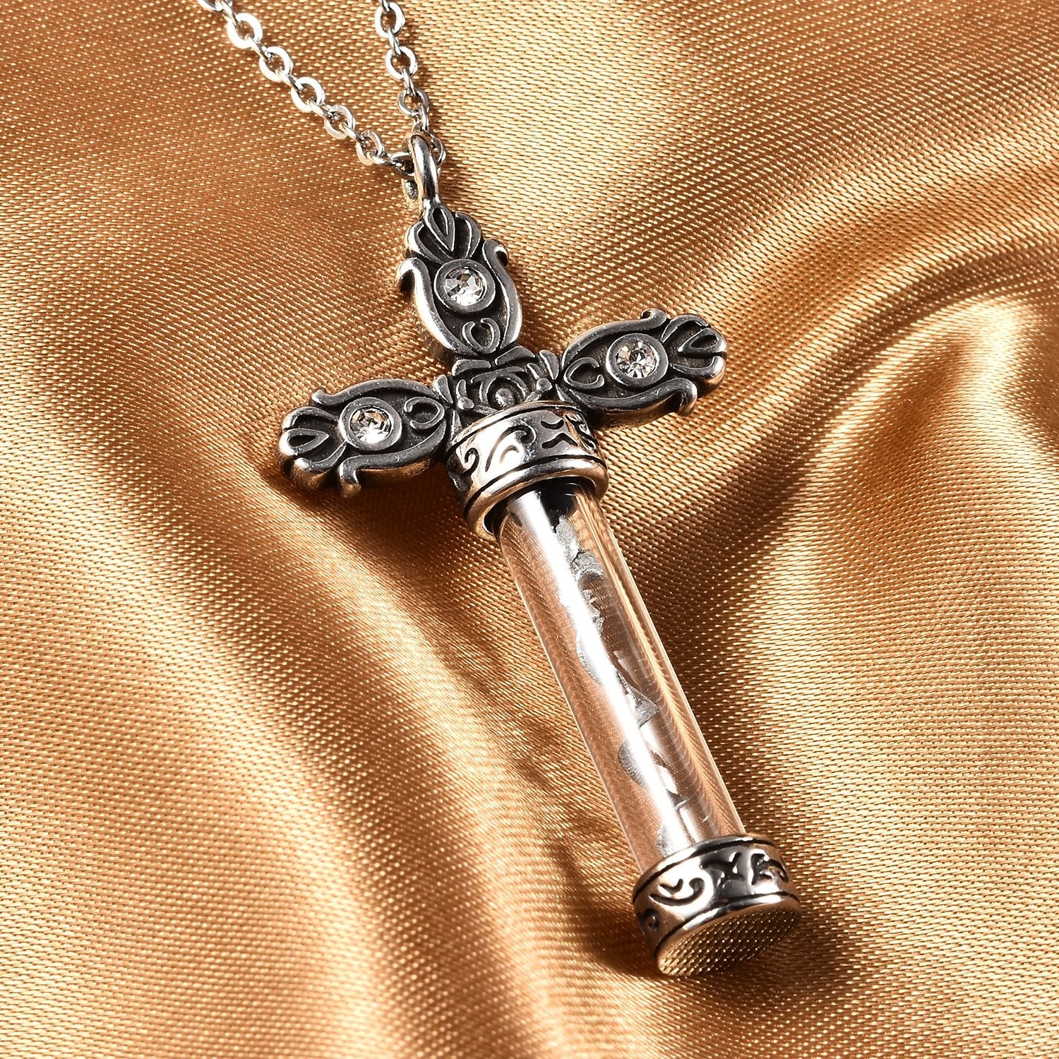 Shungite Austrian Crystal, Glass Cross Bottle Necklace 20 Inches
