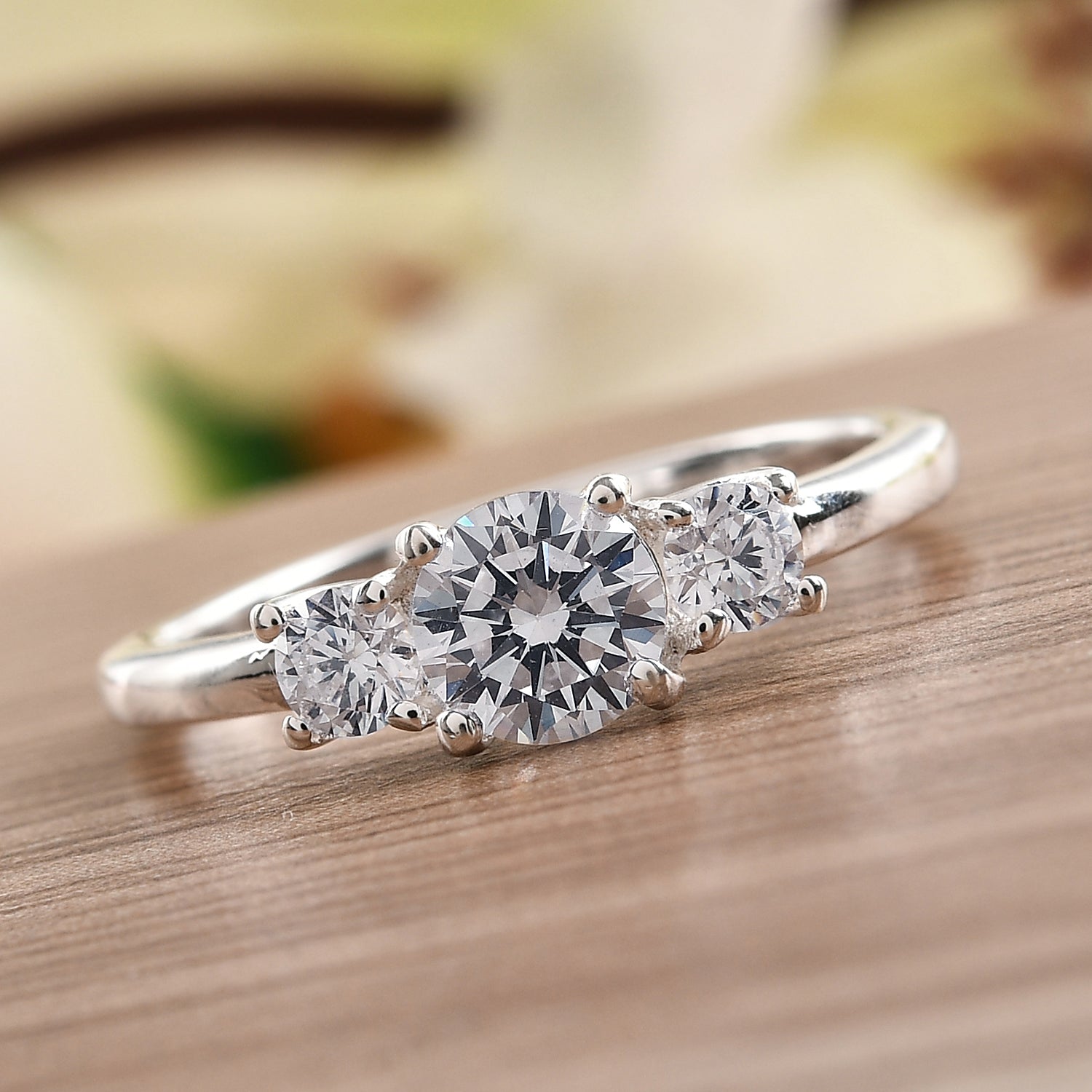 Simulated Diamond 3 Stone Ring in Sterling Silver