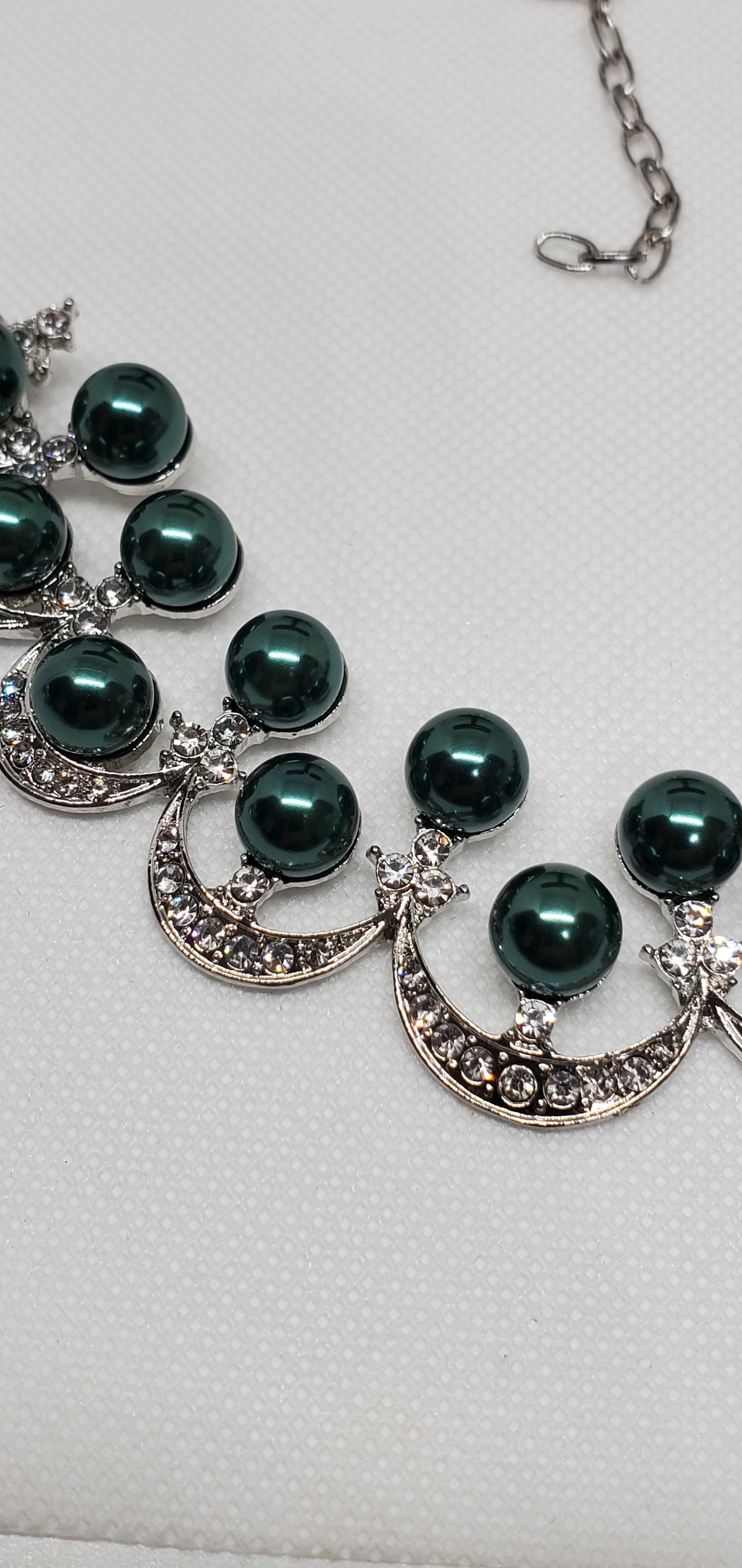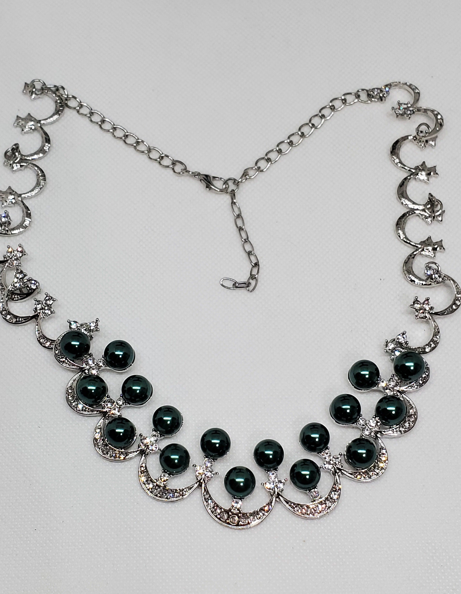 Simulated Peacock Pearl and White Austrian Crystal Necklace 20 Inches