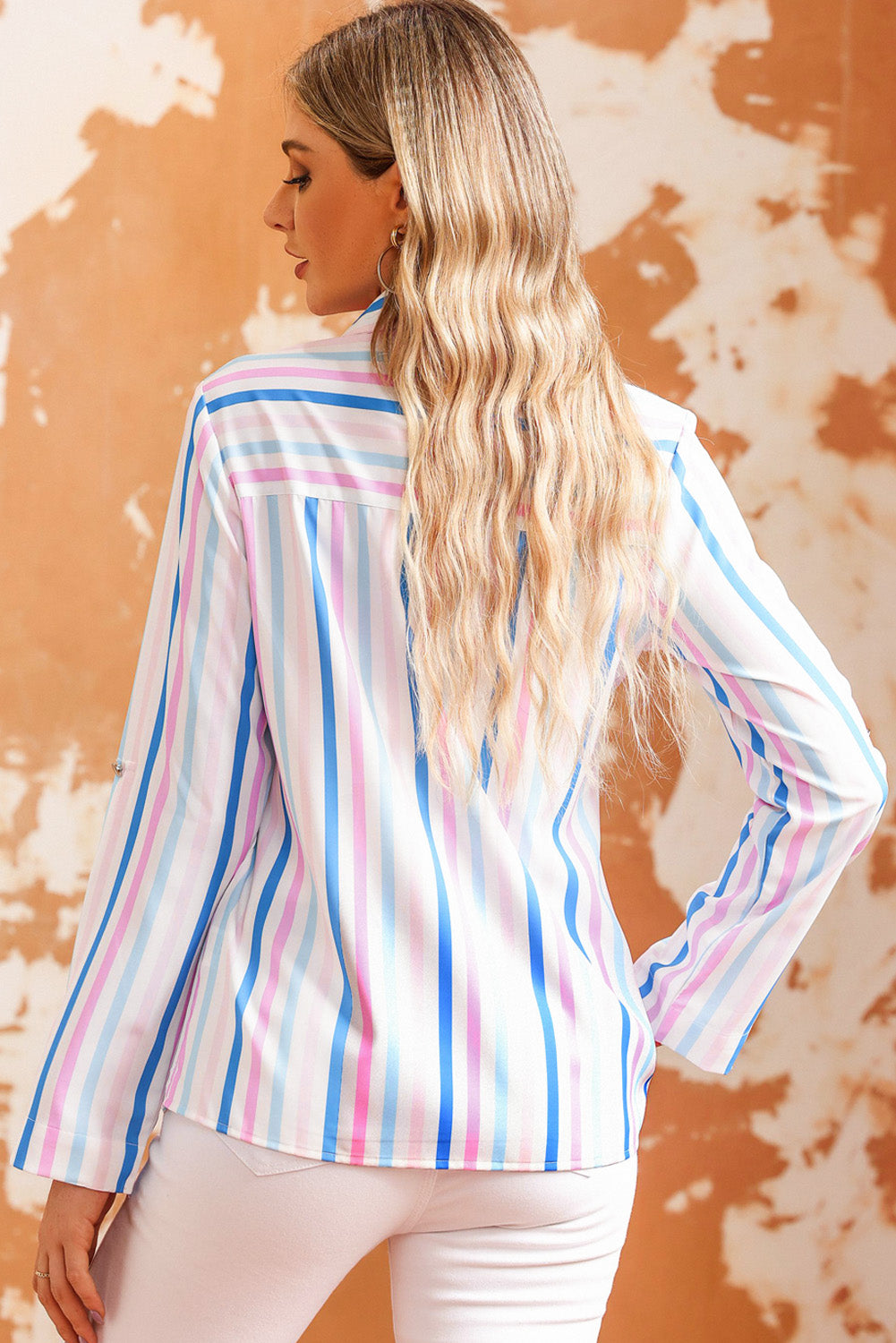Striped Long Sleeve Collared Shirt