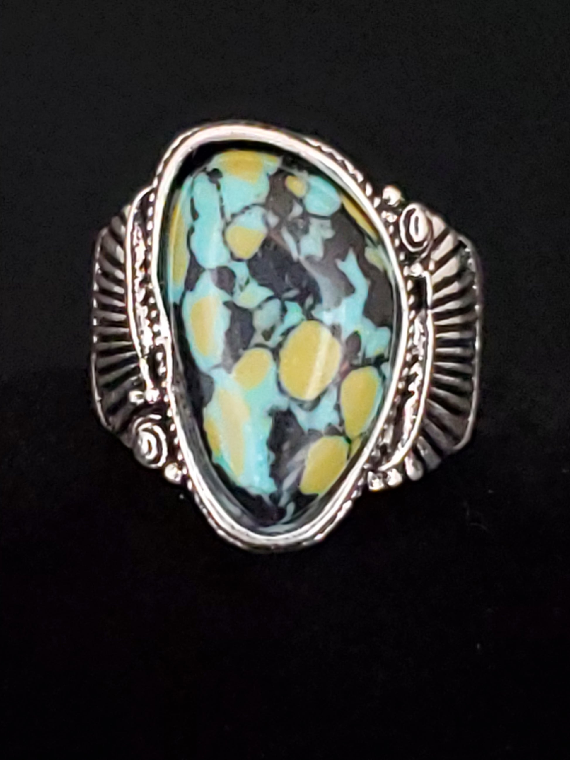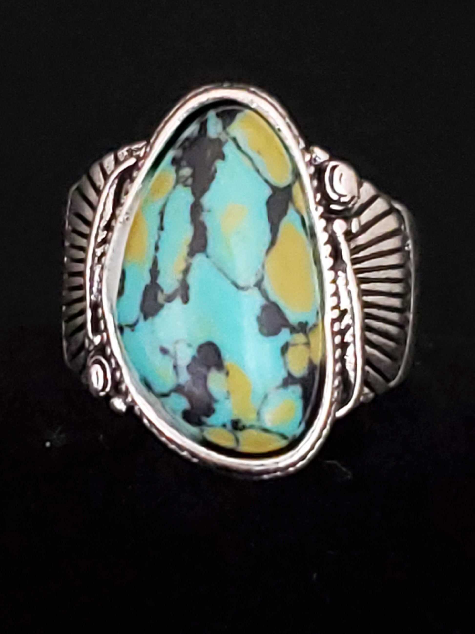 Unisex Southwest Inspired Green Turquoise Ring, Stamped, Size Multiple Sizes